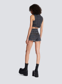 High-waisted faded denim mini-shorts