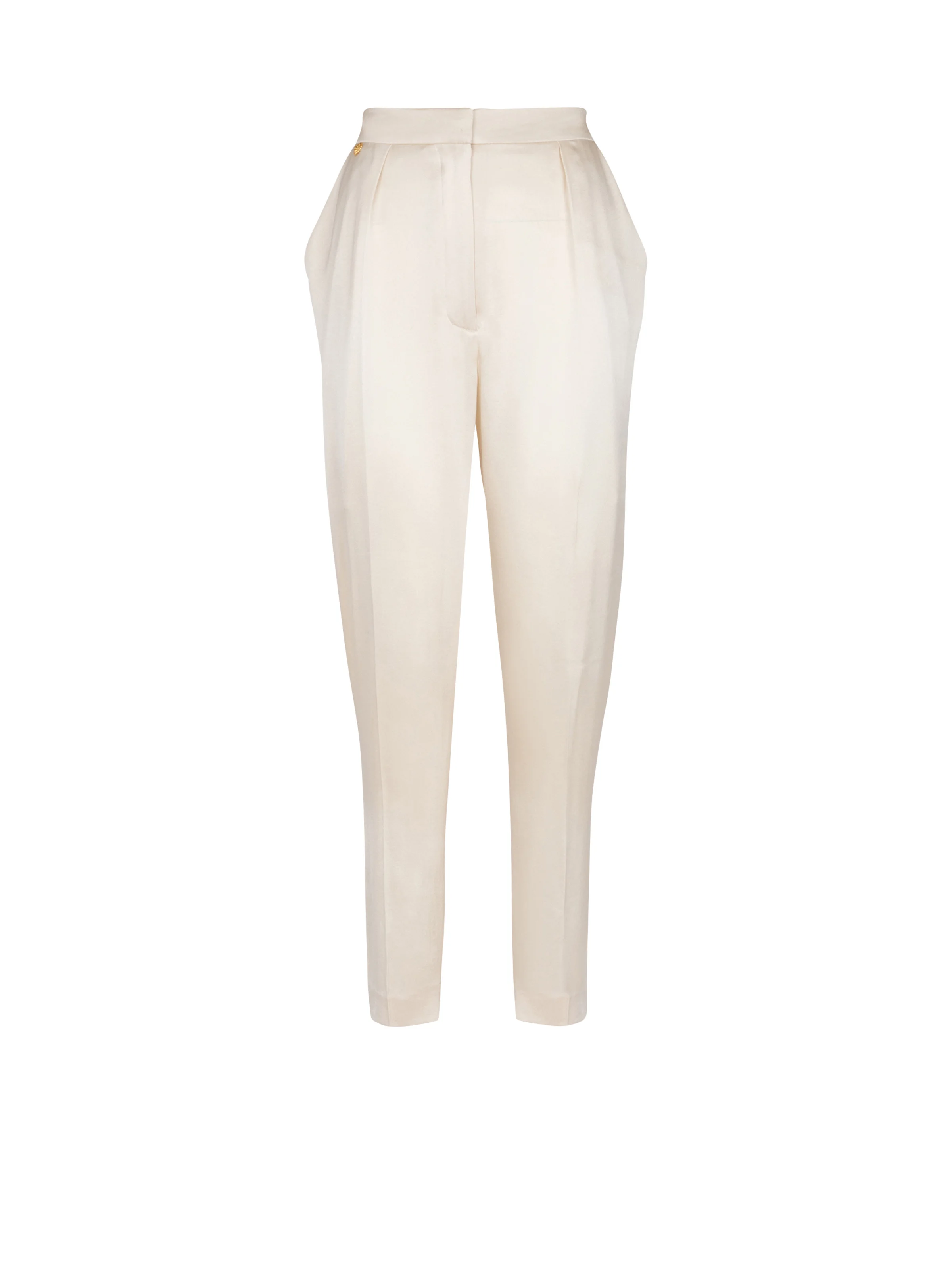 High-waisted silk trousers