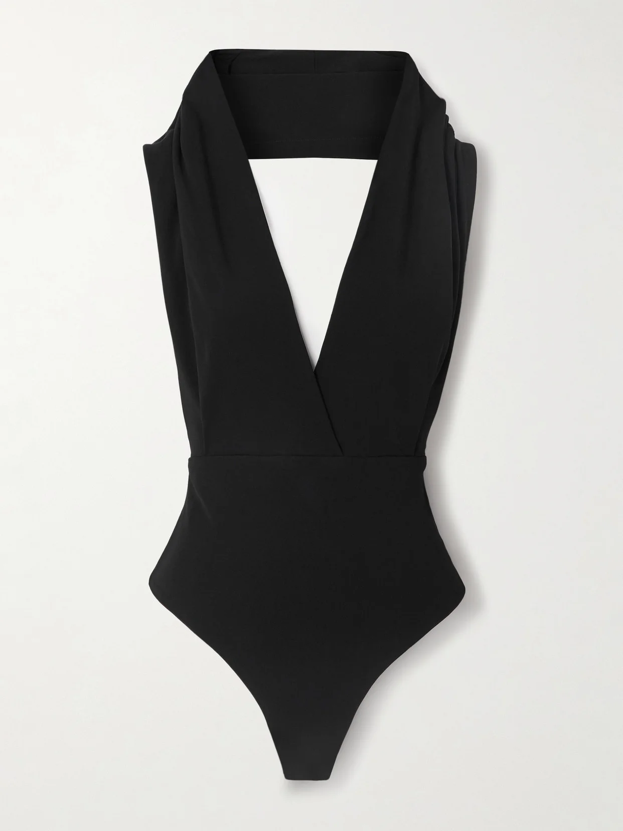 Hooded Open-back Draped Jersey Bodysuit