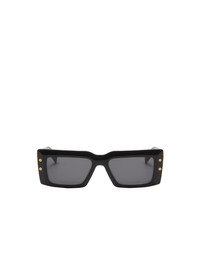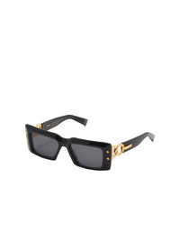 Bi-material sunglasses - Oversized rectangular acetate frame - Curved temples - Engraved logo - Titanium screw hinges - Gold titanium details - Material: acetate, titanium - Made in Japan - Item : ABPS145