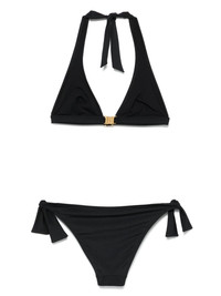 jersey bikini Highlights - Black - Triangle cup - Halterneck tie fastening - Side tie fastening - Be mindful to try on swimwear over your own garments. Made in Italy Composition Outer: Polyester 84%, Elastane 16% Lining: Polyamide 75%, Elastane 25%