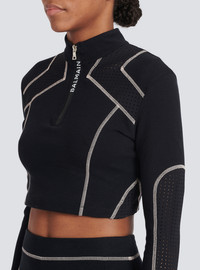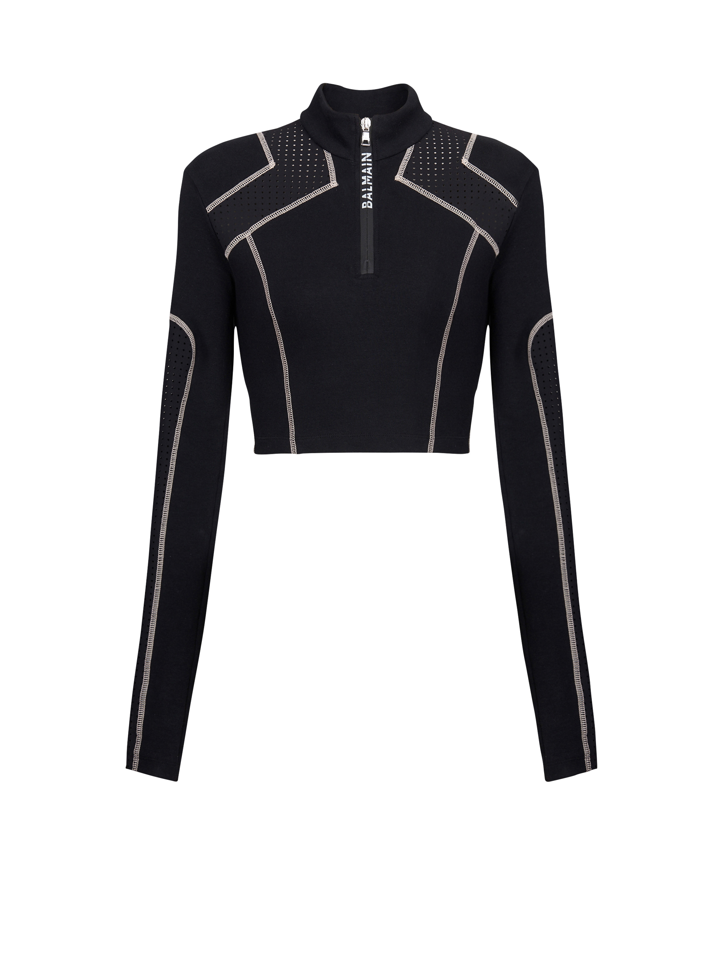 Jersey crop top Long sleeves, high neck with zip fasteningFitted cut The model is wearing FR size 36 The model's height is 177 cm / 5 ft 9 in, bust 81 cm / 32 in, waist 58 cm / 23 in, hips 89 cm / 35 in Made in Italy Materials: 95% COTTON / 5% ESLASTANE Item: YF1AR151JD58