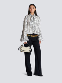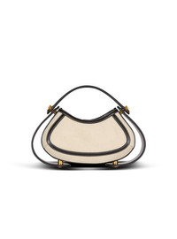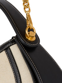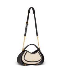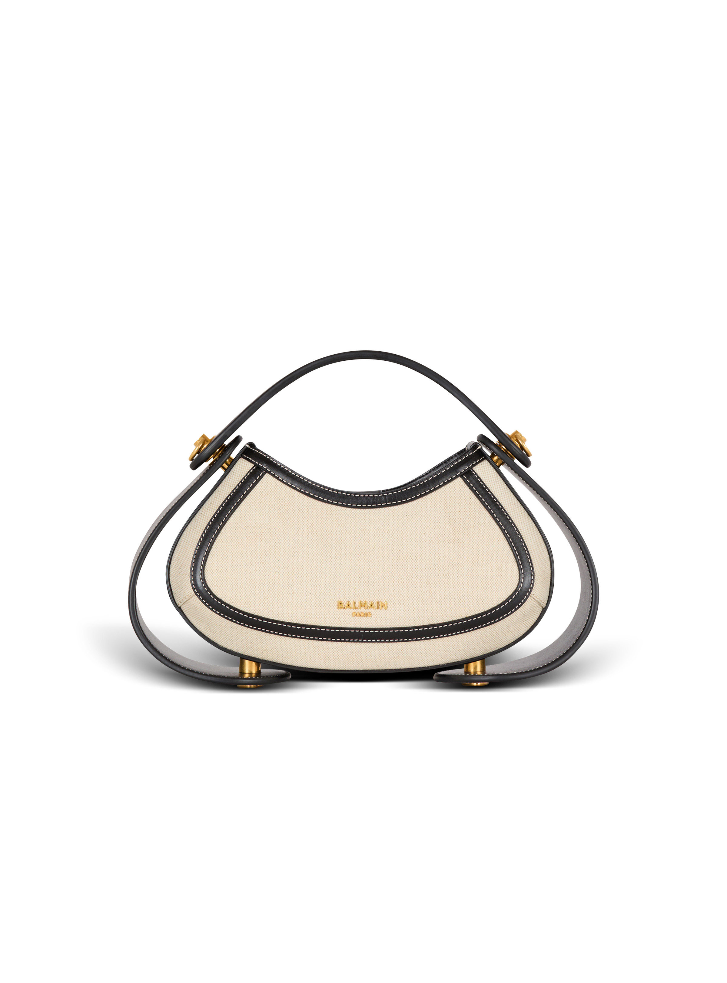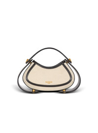 Medium Jolie Madame bag in canvas and leather - Carry in the hand, on the shoulder or across the body - Leather and chain shoulder strap, adjustable and detachable with snap hooks - Leather handle with engraved B logos and rings - Structured side panels - Metal Balmain Paris logo on the front - Magnetic fastening and leather tab - Engraved metal bag feet - Inside patch pocket - Inside leather card pocket, embossed Balmain logo - Leather lining - Gold hardware - Dimensions: 8.5 x 34.5 x 22.5 cm - Main material: 58% cotton 42% linen - Made in Italy - Item: EN1DB962TRHC