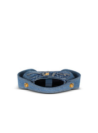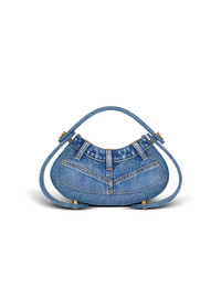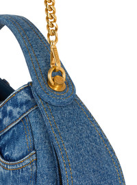 Medium denim Jolie Madame bag - Carry in the hand, on the shoulder or across the body - Denim and chain shoulder strap with snap hooks and an adjustable buckle - Handle with engraved B logos and rings - Front pocket - Jeans effect with metal "Double Chain Lion" button - Structured side panels - Magnetic fastening and leather tab - Engraved metal bag feet - Inside patch pocket - Inside leather card pocket, embossed Balmain logo - Leather lining - Gold hardware - Dimensions: 8.5 x 34.5 x 22.5 cm - Main material: 100% cotton - Made in Italy - Item: EN1DB960TDTW