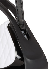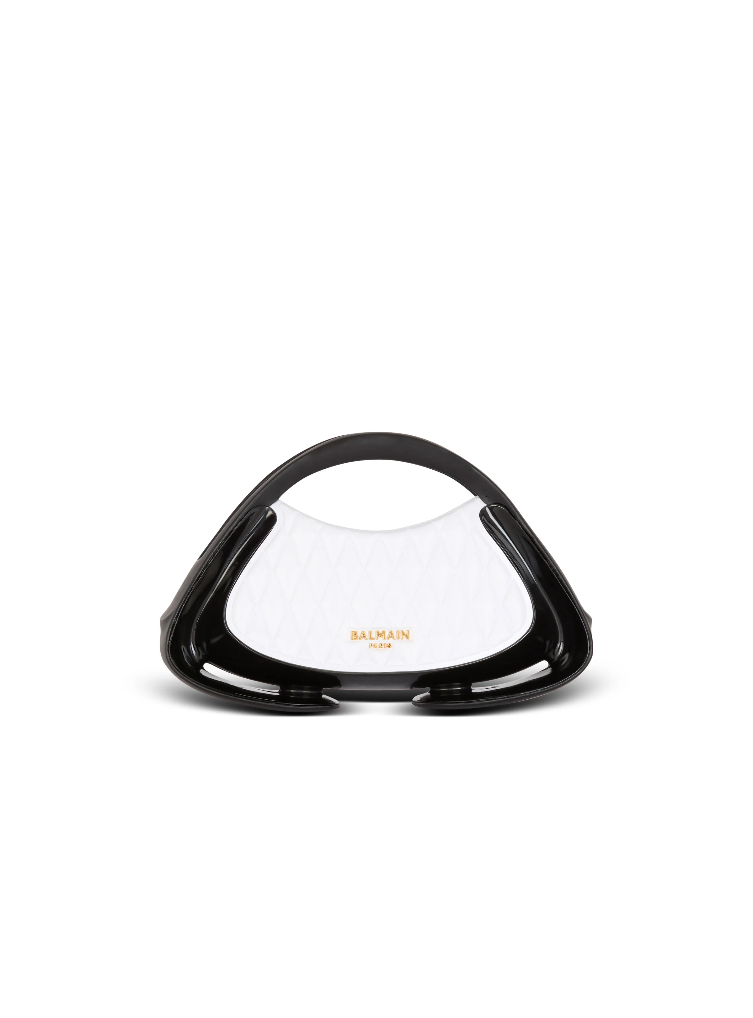 Two-tone quilted small Jolie Madame bag - Quilted faux leather design - Metal Balmain Paris logo on the front - Carry in the hand, on the shoulder or across the body - Soft rubber handles - Curved side pieces - Faux leather shoulder strap, adjustable and detachable with snap hooks - Glossy curved side detailing - Magnetic fastening - Inside faux leather card pocket, embossed Balmain logo - Faux leather lining - Gold and matte black hardware - Dimensions: 16 x 26 x 6 cm - Main material: 100% polyurethane - Made in China - Item: DN0DA902KTGL