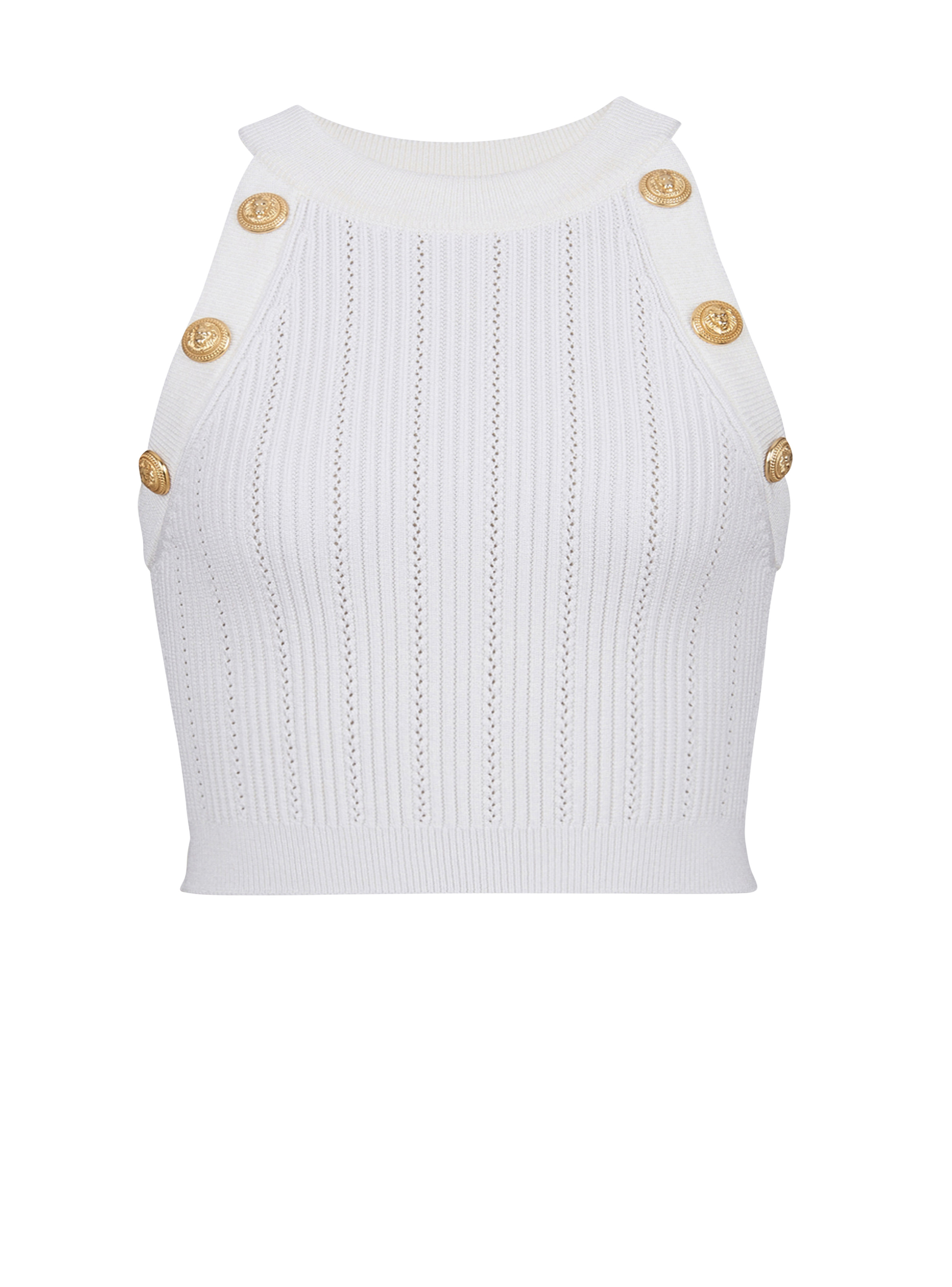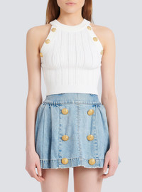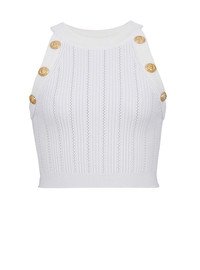 Knit crop top - Sleeveless - embossed gold-tone buttons in front - Fitted cut - The model is wearing FR size 36 - The model's height is 177 cm - Materials: 83% Viscose, 17% Polyester - Made in Italy - Item: YF1AB022KB39