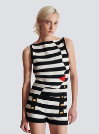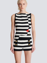 Knit Mariniere top with Face motif - Boat neckline - "Double Chain Lion" medallion in gold metal - Ribbed trim - Fitted cut - Model measures 176cm and wears a size 36 - Main material: 85% viscose 15% polyester - Made in Italy - Item: EF0AG623KI32100% of the viscose fibres used to make this garment come from certified, sustainably managed forests