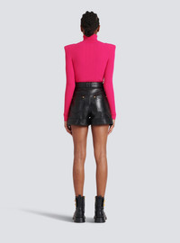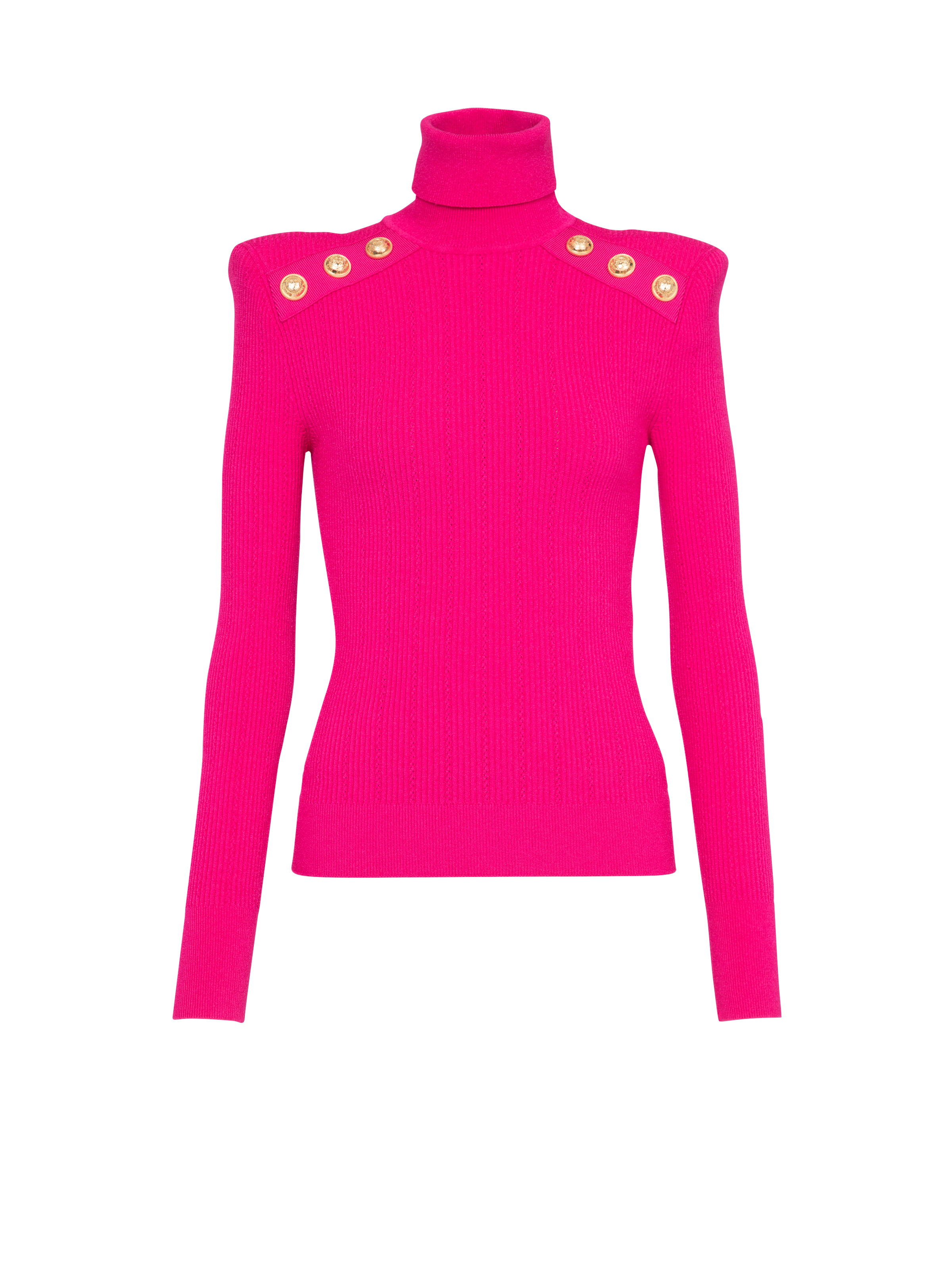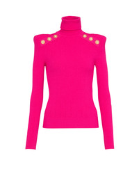 Knit sweater Turtleneck, long sleeves, structured shoulders, embossed gold-tone buttons, ribbingFitted cut Fits true to size, select your usual size The model is wearing FR size 36 The model's height is 177 cm / 5 ft 9.5 in, bust 80 cm / 31.5 in, waist 60 cm / 23.5 in, hips 88 cm / 34.5 in Made in Portugal Materials: 83% Viscose, 17% Polyester Item: YF1KH000KB00