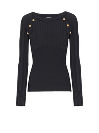 Openwork knit top - Boat neckline - Long raglan sleeves - Mixed knit - 6 "Lion Head" buttons - Fitted cut - Model measures 175cm and wears a size 36 - Main material: 75% viscose 25% polyester - Made in France - Item: GF1ARA60KJ45100% of the viscose fibres used to make this garment come from certified, sustainably managed forests