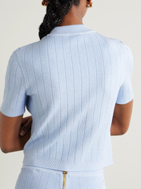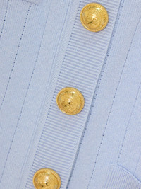 The gold-tone crest buttons on Balmain's cardigan ensure it'll be instantly recognizable to those in the know. It's made from ribbed-knit with subtle pointelle details for a close fit and fitted with an array of trompe l'oeil and patch pockets. Complement the sky-blue shade with white jeans.