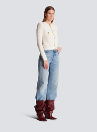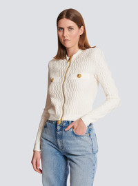 Crocodile knit jacket - Round neckline - Zip fastening - 2 decorative front pockets with gold buttons - Long sleeves - Ribbed hem - Main material: 85% viscose 15% polyester - Made in Italy - Item: FF0KL078KJ03