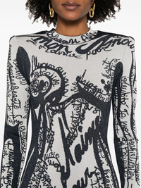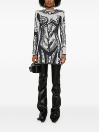 body-motif embroidered mini dress Highlights - Black - Rear zip fastening - Shoulder pads - Long sleeves - Straight hem Made in France Composition Viscose 86% SIZE & FIT Model measurements Height 5 ft 11 in(1.8 m) Bust/Chest 32.67 in(83 cm) Hips 35.82 in(91 cm) Waist 25.98 in(66 cm) FittingInformation Designed for a close fit throughout The internal shoulder pads offer a structured shape Made from a midweight non-stretch fabric, this piece offers minimal elasticity when worn Washing instructions Dry Clean Only