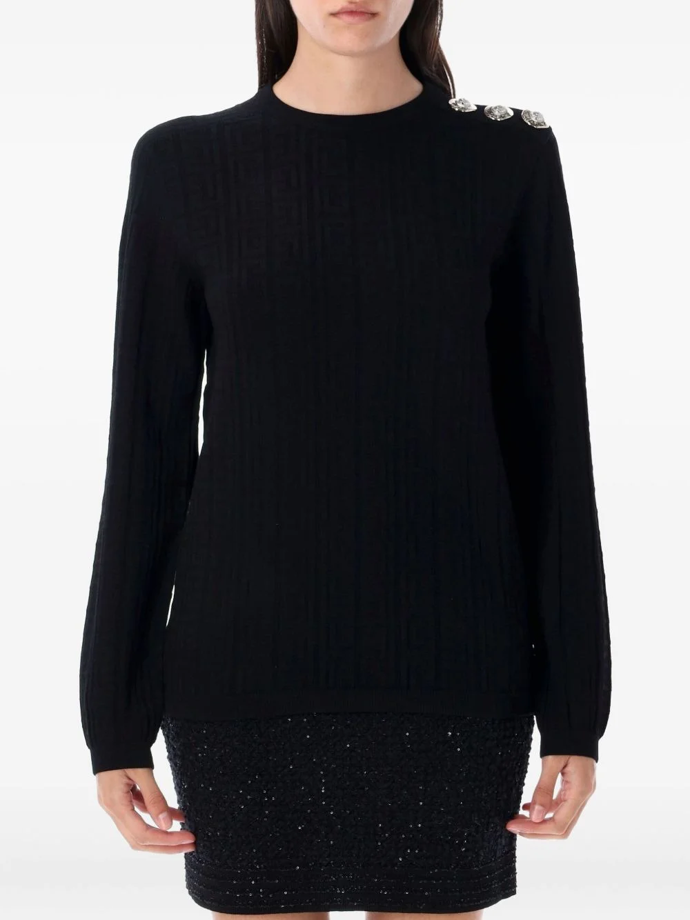 monogram button-embellished sweater Highlights - Black - Monogram pattern - Three-buttons shoulder detail - Long sleeves - Round neck Made in France Composition Fabric 100% Washing instructions Read Manufacturer Guidelines