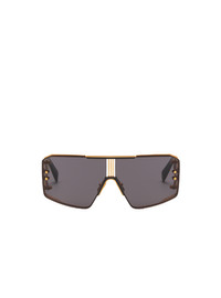 Titanium sunglasses - Oversized rimmed mask frame - Bridge decorated with 3 titanium stripes - Curved branded temples with tips - Titanium screw hinges - Gold titanium details - Material: titanium - Made in Japan - Item : ABPS146