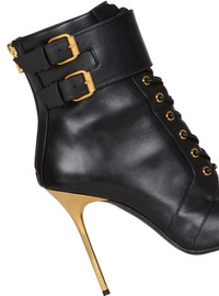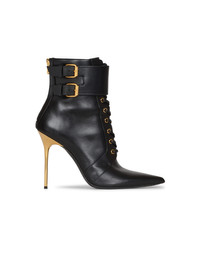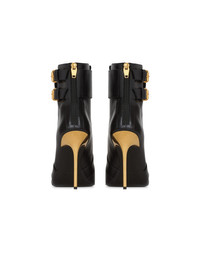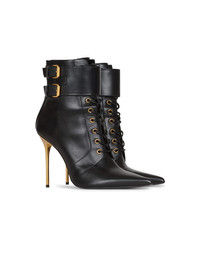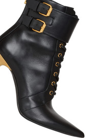 Calfskin Uria ankle boots 9.5 cm / 3.7 in lacquered black heel, zip fastening on interior, leather sole, pointed toe, decorative buckles on exterior Fits true to size: select your usual size. Made in Italy Material: Calfskin Item: XN0TA740LVIT