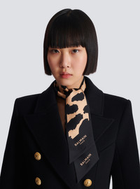 Leopard print silk bandana - Reversible - Balmain Paris logos - Dimensions: 96 x 8.5 cm - Main material: 100% silk - Made in Italy - Item: FF1XF090SF17