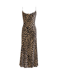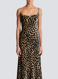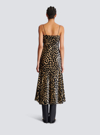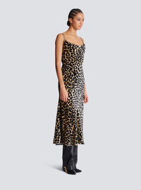 Flowing leopard print velvet dress - Thin straps - Cowl neckline - Side fastening with invisible zip and hook - Midi length, fitted at the waist and flaring out - Model measures 179cm and wears a size 36 - Main material: 82% viscose 18% silk - Made in Portugal - Item: FF1RH055VI33