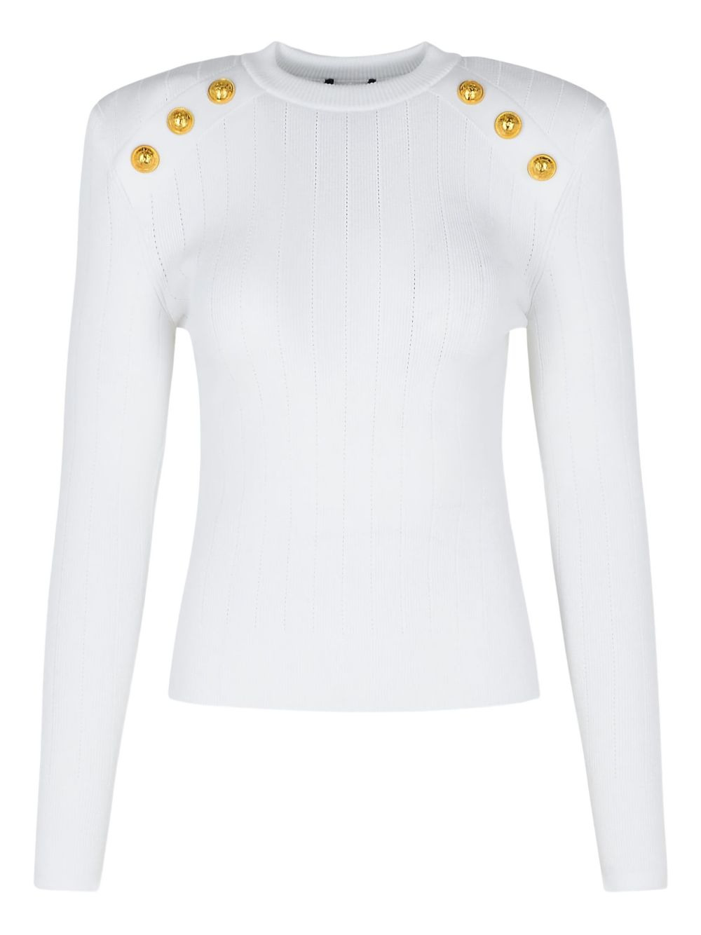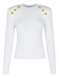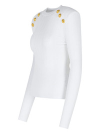 button-embellished sweater Highlights Made in Italy Composition Viscose 83%, Polyester 17% SIZE & FIT FittingInformation Designed for a slim fit that sits just away from the body offering a close yet comfortable fit The internal shoulder pads offer a structured shape Made with a midweight knit, this piece offers some stretch