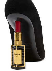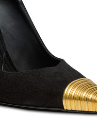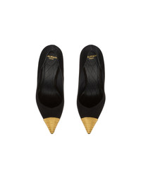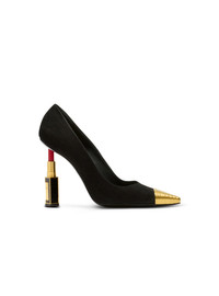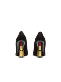 Lipstick pumps in suede leather and brass - Pointed toe in striped brass - Brass lipstick-shaped stiletto heel - Leather outsole - Diamond-embossed leather insole - Leather lining - Heel height: 9.5 cm - Main material: 100% goatskin - Made in Italy - Item: EN0UA113LVGC