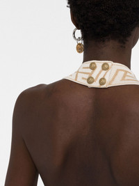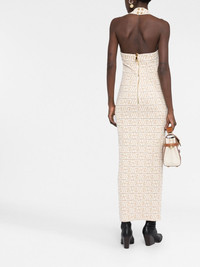 logo-jacquard halterneck dress Taken from the initials of founder Pierre Balmain, the Balmain monogram is a key house motif. It details this dress in a patterned, metallic thread iteration as a glimmering and instantly recognisable design detail. Made in Italy Composition Viscose 51%, Polyamide 28%, Metallic Fibre 12%, Nylon 9% SIZE & FIT Model measurements Height 5 ft 11 in(1.8 m) Bust/Chest 32.67 in(83 cm) Hips 36.22 in(92 cm) Waist 24.4 in(62 cm) Washing instructions Dry Clean Only