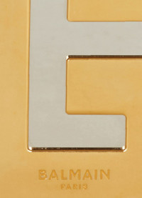 DESCRIPTION - carabiner - chain strap - front logo - hand carried - worn on the shoulder - worn crossbody - gold finish - detachable strap - single handle DETAILS AND CARE MATERIAL: 100% Aluminum COLOR: gold HEIGHT: 15 cm / 5.9 " WIDTH: 13 cm / 5.1 " DEPTH: 3.8 cm / 1.5 " COUNTRY OF MANUFACTURE: Italy PRODUCT CODE: BLM6M5VAGOLLLLLL00