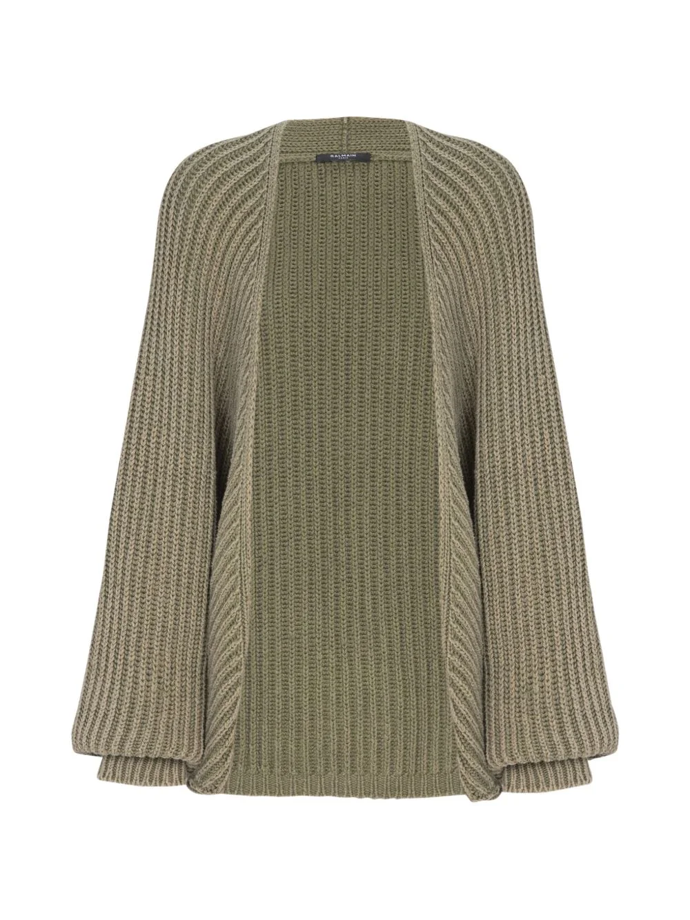 long-sleeve cardigan Highlights - Khaki green - Ribbed knit - Long sleeves - Open front Made in Italy Composition Cotton 90%, Cashmere 10% Washing instructions Specialist Cleaning