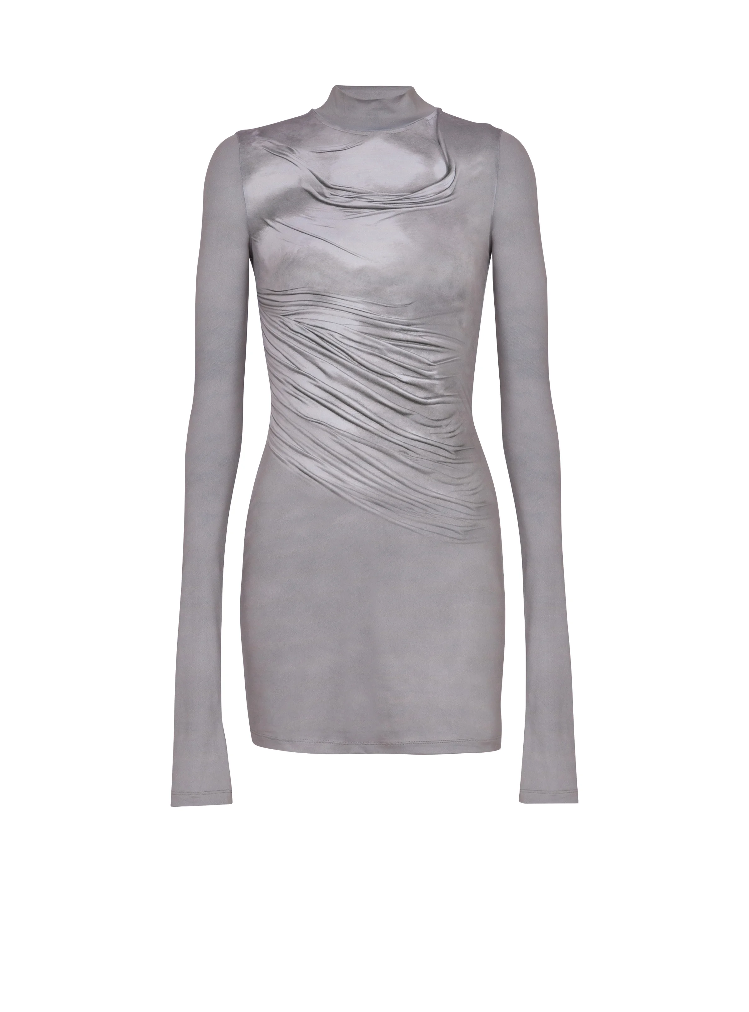 Long-sleeve high-neck draped print trompe-l'œil t-shirt
