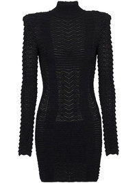 long-sleeve textured minidress Highlights - Black - Knitted construction - Chevron print - Textured finish - Shoulder pads - High neck - Long sleeves - Rear zip fastening - Straight hem Made in France Composition Body: Viscose 83%, Polyester 17%