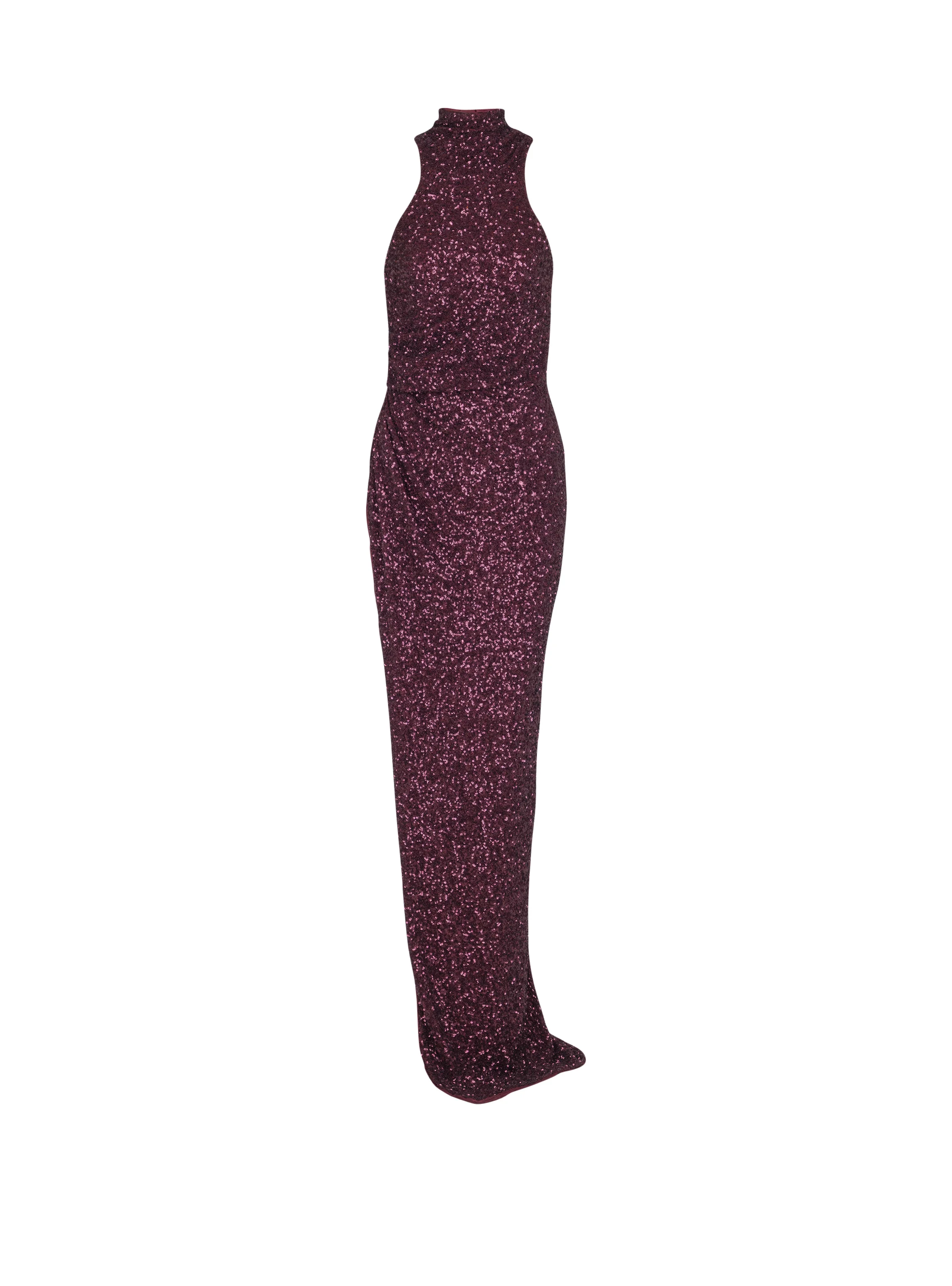 Long sleeveless sequin dress - High neck - Draped bodice - Large front slit - Invisible zip fastening with Balmain Paris-engraved slider - Lined - Fitted cut - Model measures 180cm and wears a size 36 - Main material: 95% polyester 5% elastane - Made in France - Item: FF0RP777XL33