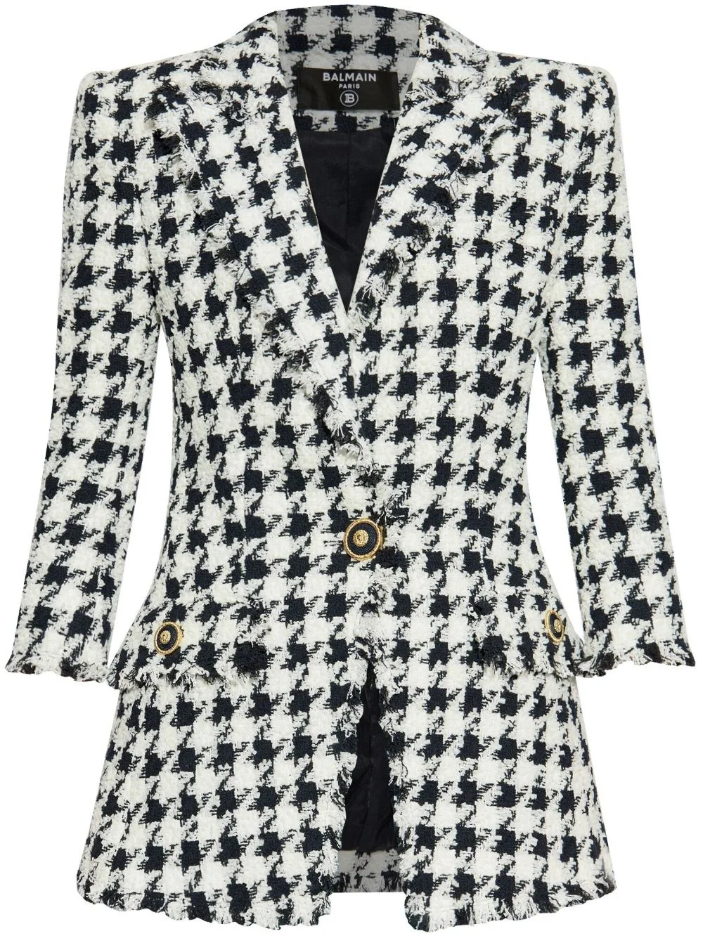 houndstooth blazer Highlights - White - Front button fastening - Shoulder pads - Two side flap pockets - Frayed detailing Imported Composition Outer: Polyamide 47%, Cotton 37%, Acrylic 16% Lining: Viscose 52%, Cotton 48% Washing instructions Read Manufacturer Guidelines