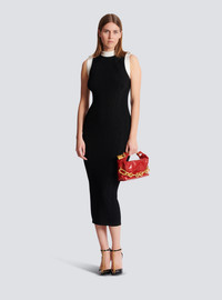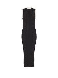Two-tone cable-knit and openwork knit dress - Round neckline - Contrasting shoulder tabs with “Chain Lion" buttons in gold metal - Sleeveless - Contrasting ribbed trim at the neckline and armholes - Long, slim fit - Model measures 179cm and wears a size 36 - Main material: 84% viscose 16% polyester - Made in Italy - Item: FF1RJ032KI64100% of the viscose fibres used to make this garment come from certified, sustainably managed forests