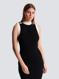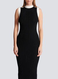 Long two-tone cable-knit dress