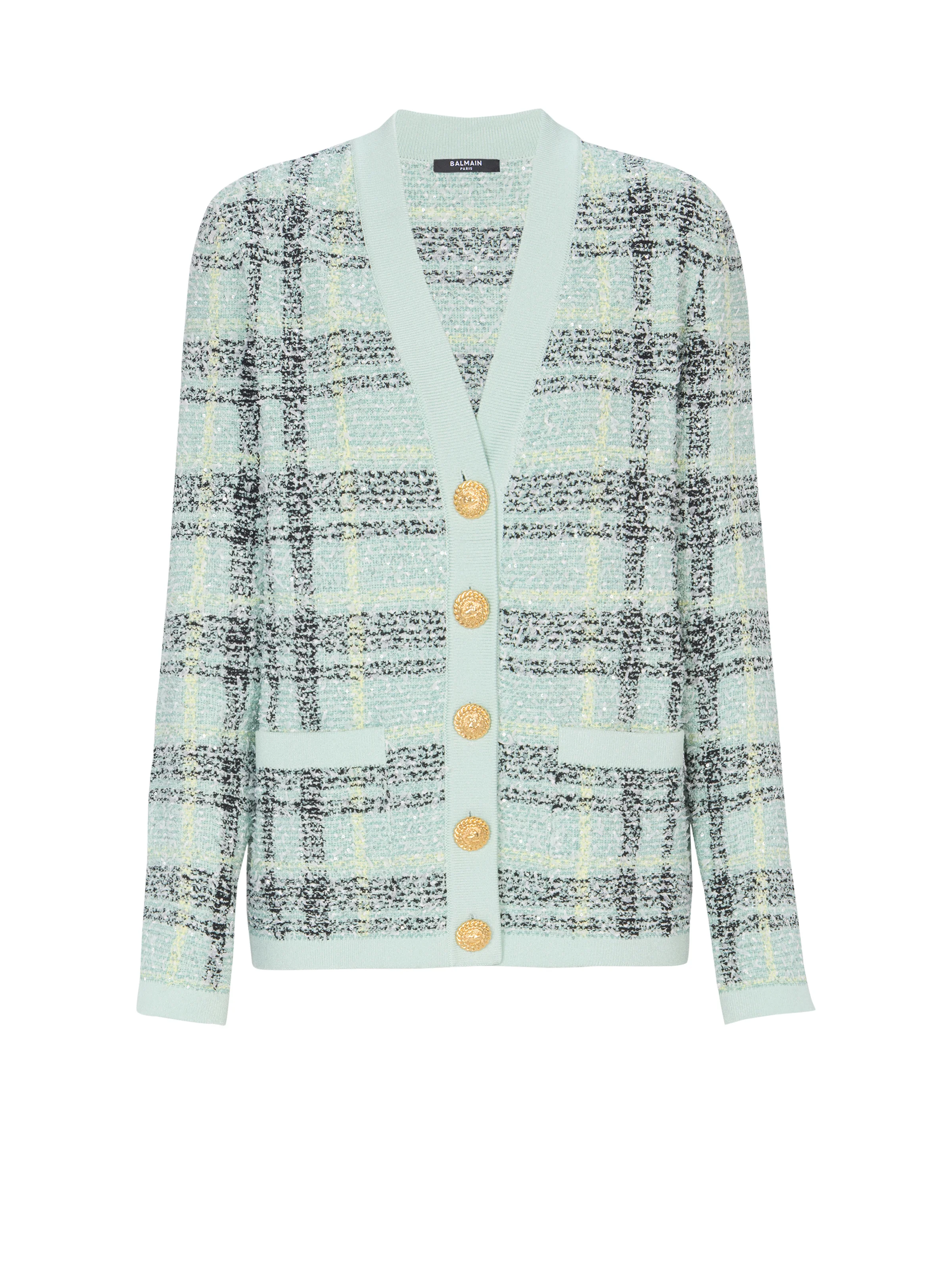 Loose glitter tweed cardigan - V-neck - Long sleeves - Button fastening - Patch pockets at the sides - Ribbed edging and relaxed fit - Model measures 180cm and wears a size 36 - Main material: 53% viscose 27% polyamide 14% polyester 5% cotton 1% metallic polyester - Made in Italy - Item: GF1KO003KJ56