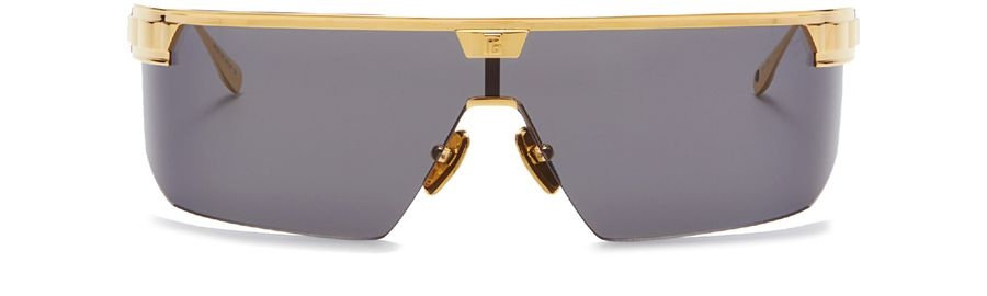 DESCRIPTION - logo frame - tinted lenses - thick temples DETAILS AND CARE MATERIAL: 100% titanium COLOR: gold COUNTRY OF MANUFACTURE: Japan PRODUCT CODE: BLMYZ2K5GOLLLLLL00