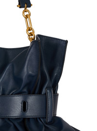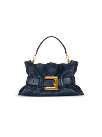 Medium Anthem bag in calfskin leather - Soft belted style - Carry in the hand or wear on the shoulder - Covered leather handle and chain - Leather belt and belt loops - Metal PB-engraved buckle - Metal PB logo on the back - Magnetic fastening - Golden embossed Balmain logo on the inside - Inside pocket with press stud - Embossed leather inside card pocket - Suede leather lining - Gold hardware - Dimensions: 35 x 20 x 8 cm - Main material: 100% calfskin - Made in Italy - Item: FN1KK990LVGX