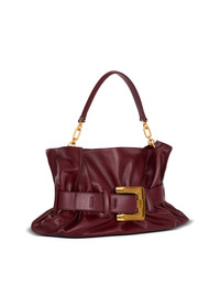 Medium Anthem bag in calfskin leather - Soft belted style - Carry in the hand or wear on the shoulder - Covered leather handle and chain - Leather belt and belt loops - Antique metal PB-engraved buckle - Metal PB logo on the back - Magnetic fastening - Embossed gold Balmain logo on the inside - Inside pocket with press stud - Embossed leather inside card pocket - Suede leather lining - Gold hardware - Dimensions: 35 x 20 x 8 cm - Main material: 100% calfskin - Made in Italy - Item: FN0KK990LVGX
