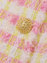 EDITORS'NOTES Elegantly polished, Balmain's dress is particularly joyful thanks to its upbeat colors. It's tailored from tweed with frayed edges and has a slim fit with a décolletage-framing neckline and cap sleeves. Match jewelry to the signature gold-tone buttons, which depict lions. SIZE & FIT Model measurements: - Fits large to size, take one size smaller than normal - Designed for a slim fit - Mid-weight, non-stretchy fabric - Model is 177cm/ 5'10" , normally wears a FR 36 and is wearing a FR 34 - Bust: 79cm/ 31" - Waist: 61cm/ 24" - Hip: 89cm/ 35" DETAILS & CARE - Pink, white and yellow cotton-blend tweed - Zip fastening along back - 80% cotton, 18% polyamide, 2% polyester Large to size. See Size & Fit notes.