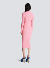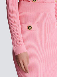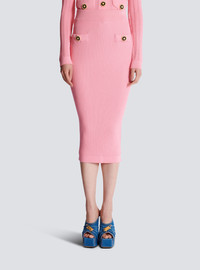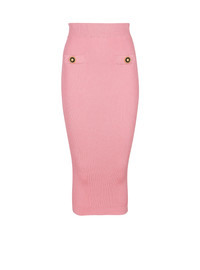 Plain ribbed knit skirt - Reinforced waistband - 2 fake front pockets with buttons - "Chain Lion Thread" buttons in two-tone metal - Ribbed waist and hem - Midi, tight, high-waisted fit - Model measures 179cm and wears a size 36 - Main material: 84% viscose 16% polyester - Made in Italy - Item: EF1LD022KI10100% of the viscose fibres used to make this garment come from certified, sustainably managed forests