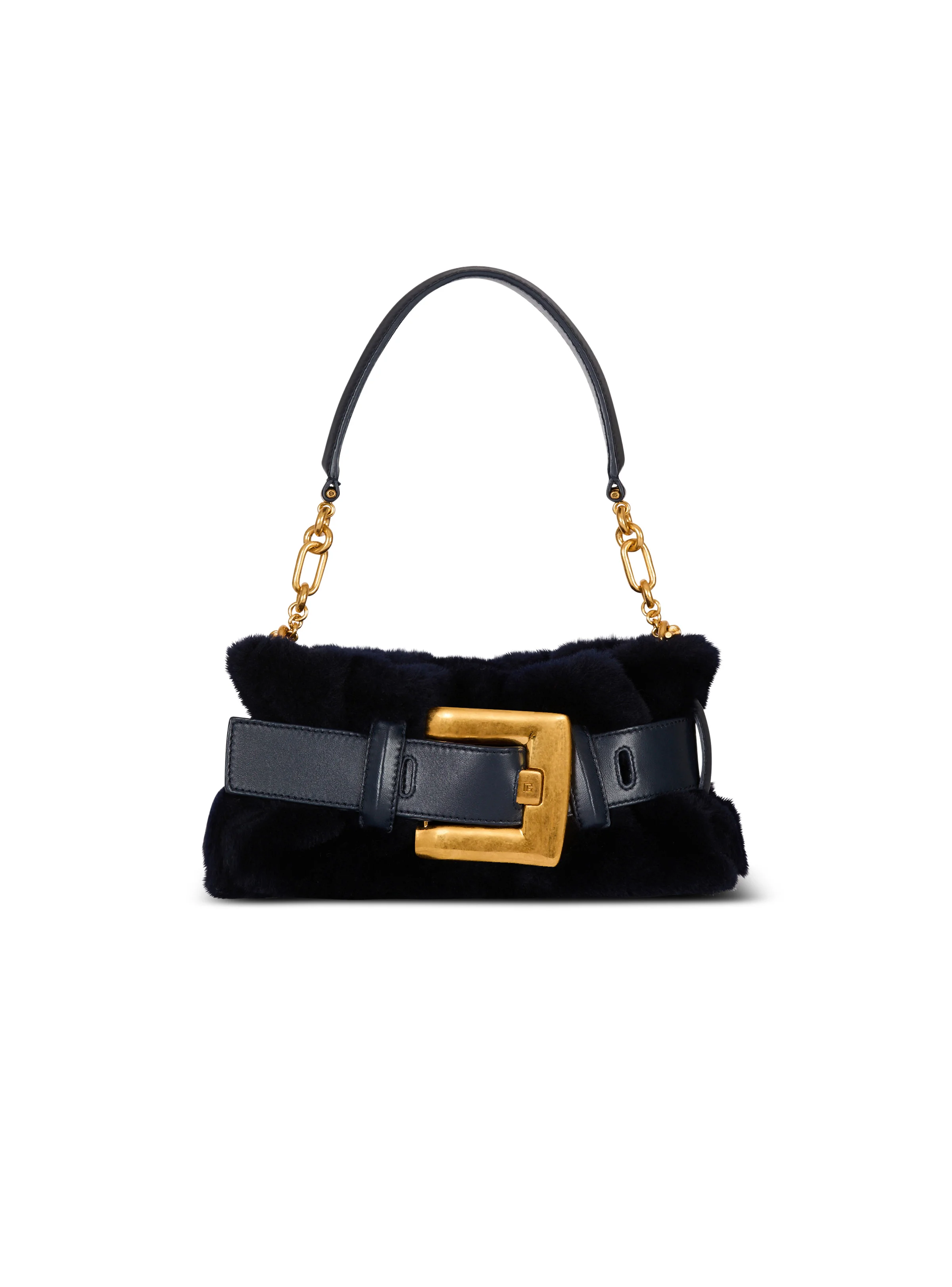 Mini Anthem bag in shearling - Soft belted style - Carry in the hand or wear on the shoulder - Detachable chain and leather handle - Leather belt and belt loops - Antique metal PB-engraved buckle - Metal PB logo on the back - Magnetic fastening - Embossed leather inside card pocket - Gold hardware - Dimensions: 24 x 18 x 10 cm - Main material: 100% sheepskin - Made in Italy - Item: FN0AE994LMER