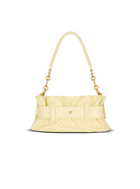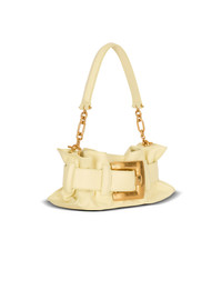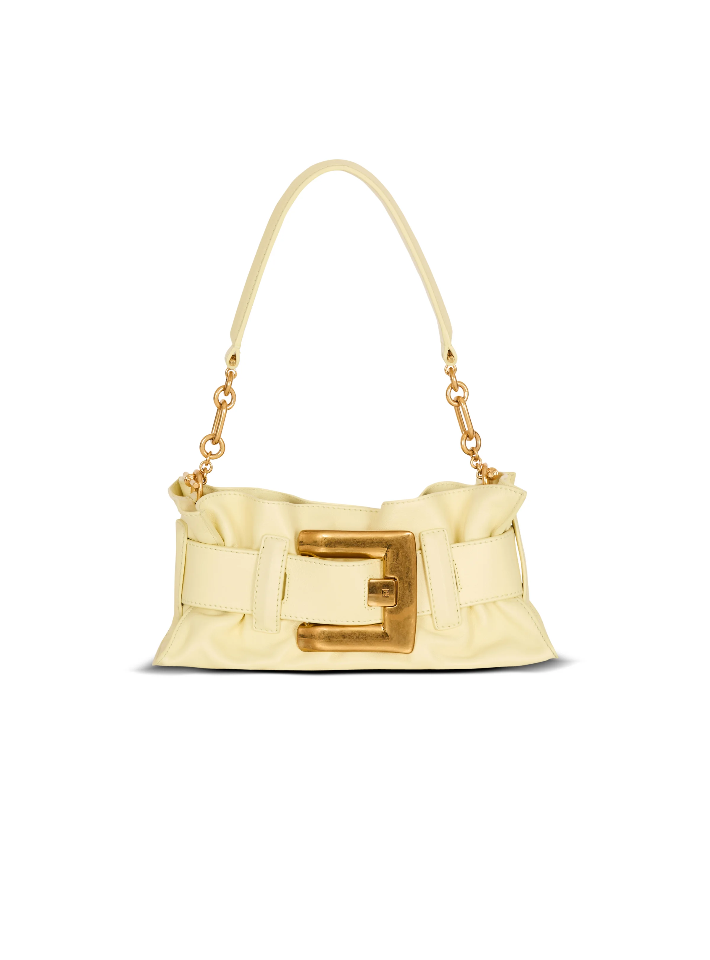 Mini Anthem Shoulder bag in calfskin leather - Soft belted style - Carry in the hand or wear on the shoulder - Detachable chain and leather-covered handle - Leather belt and belt loops - Metal PB-engraved buckle - Metal PB logo on the back - Magnetic fastening - Embossed leather inside card pocket - Gold hardware - Dimensions: 30.5 x 11.5 x 10 cm - Main material: 100% calfskin - Made in Italy - Item: GN1AE994LSAX