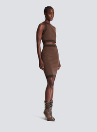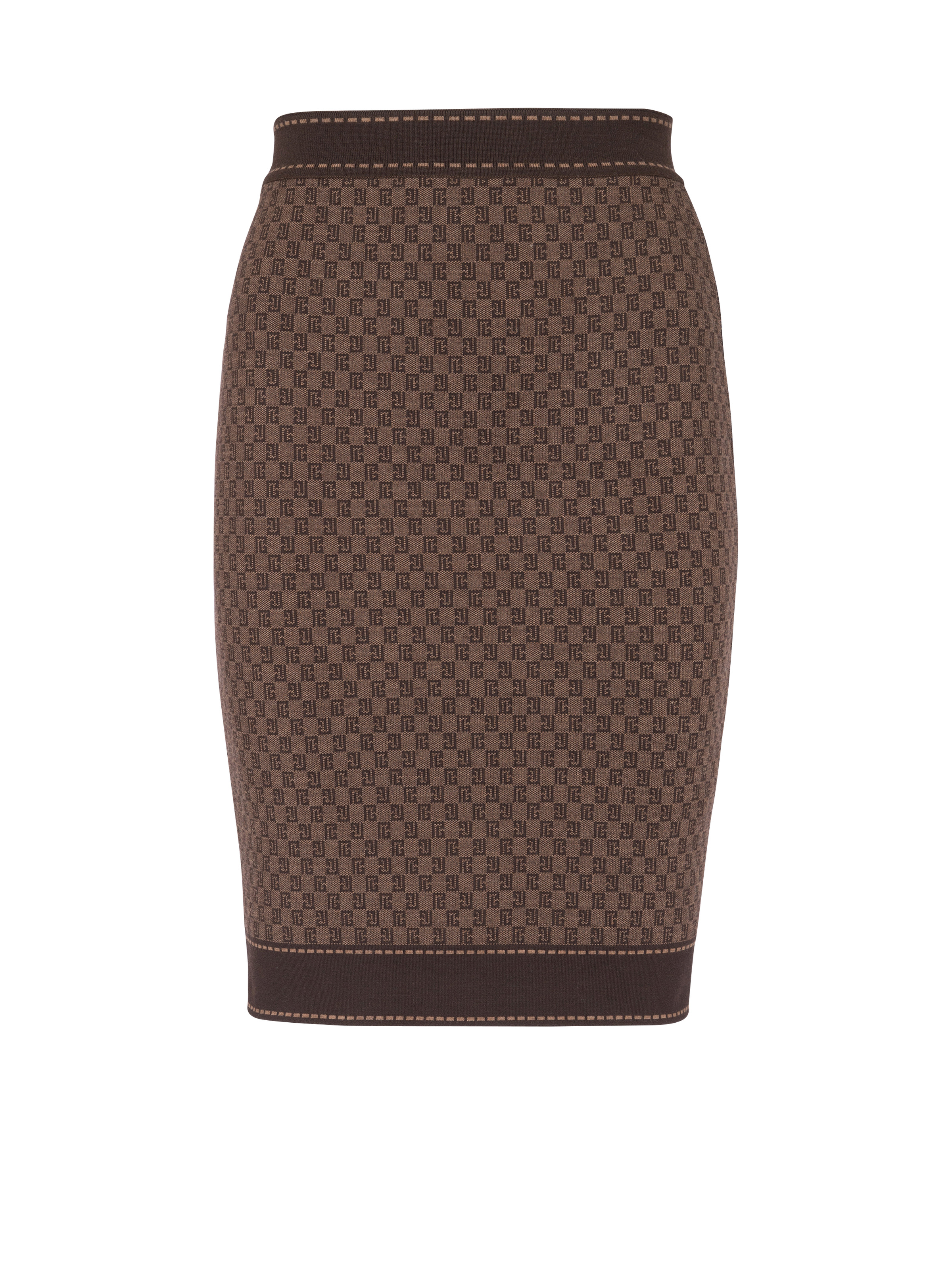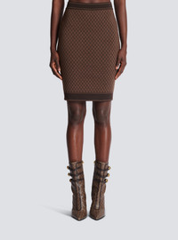 Mini monogram jacquard midi skirt - Edges in a contrasting fine knit - Double zip fastening at the back in gold metal - Model measures 179cm and wears a size 36 - Material: 80% mohair, 20% polyamide - Made in France - Item: BF0LC008KF23