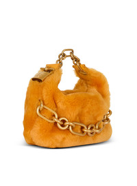 Mini Sync bag in shearling - Soft bag - Double handle - Chain handles - Eyelets on the sides - PB-engraved golden metal lock on the side - Embossed gold Balmain Paris logo on the front - Zip fastening with leather slider - Embossed leather inside card pocket - Canvas lining - Gold hardware - Dimensions: 7 x 21 x 11 cm - Main material: 100% lambskin - Made in Italy - Item: FN0AD001LMER