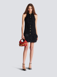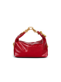 Sync Mini bag in calfskin leather - Soft leather bag - Double handle - Chain handles - Eyelets on the sides - PB-engraved golden metal lock on the side - Golden Balmain Paris logo embossed on the front - Zip fastening with leather slider - Embossed leather inside card pocket - Canvas lining - Gold hardware - Dimensions: 7 x 21 x 11 cm - Main material: 100% calfskin - Made in Italy - Item: FN1AD001LBFO