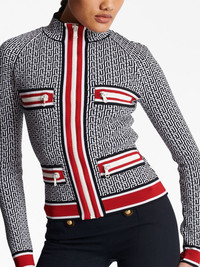 monogram-jacquard zip-up cardigan