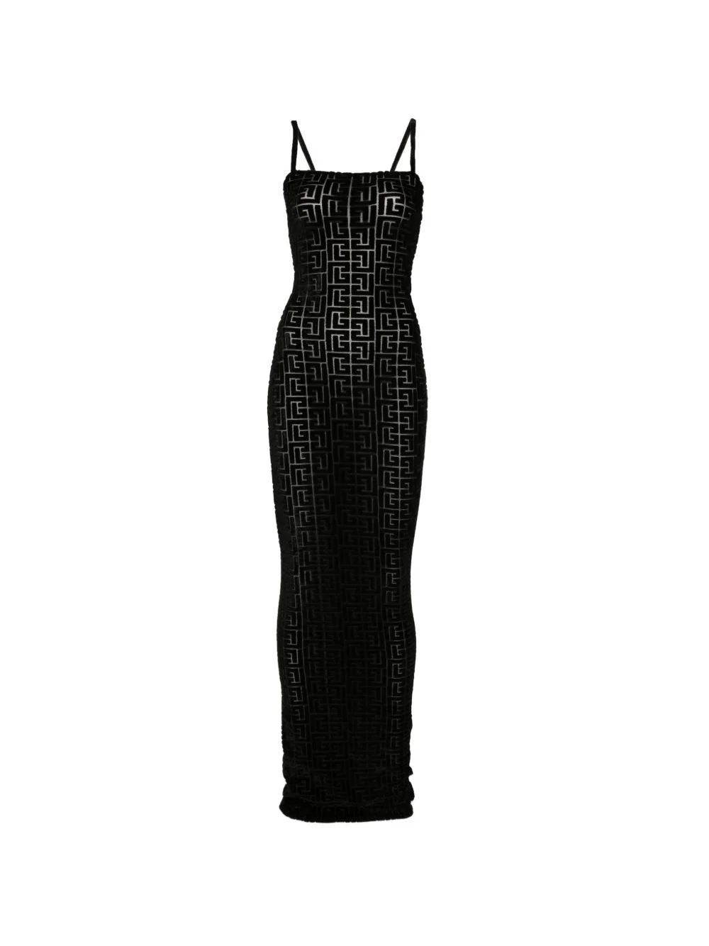 monogram-pattern maxi dress Highlights - Black - Monogram pattern - Spaghetti straps - Square neck - Maxi length Made in France Composition Viscose 87%, Elastane 13% Washing instructions Dry Clean Only