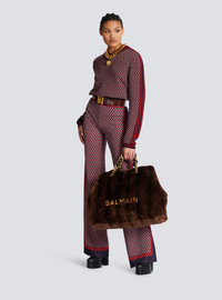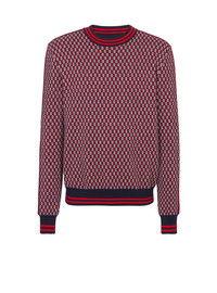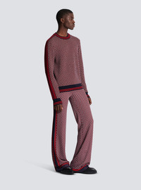 Monogrammed jacquard wool jumper - Round neckline - Long sleeves - Bands with contrasting stripes down the sleeves and at the cuffs, waist and neck - Contrasting plain back - Model measures 187 cm and wears a size M - Material: 100% wool - Made in France - Item: BU1KD110KE94