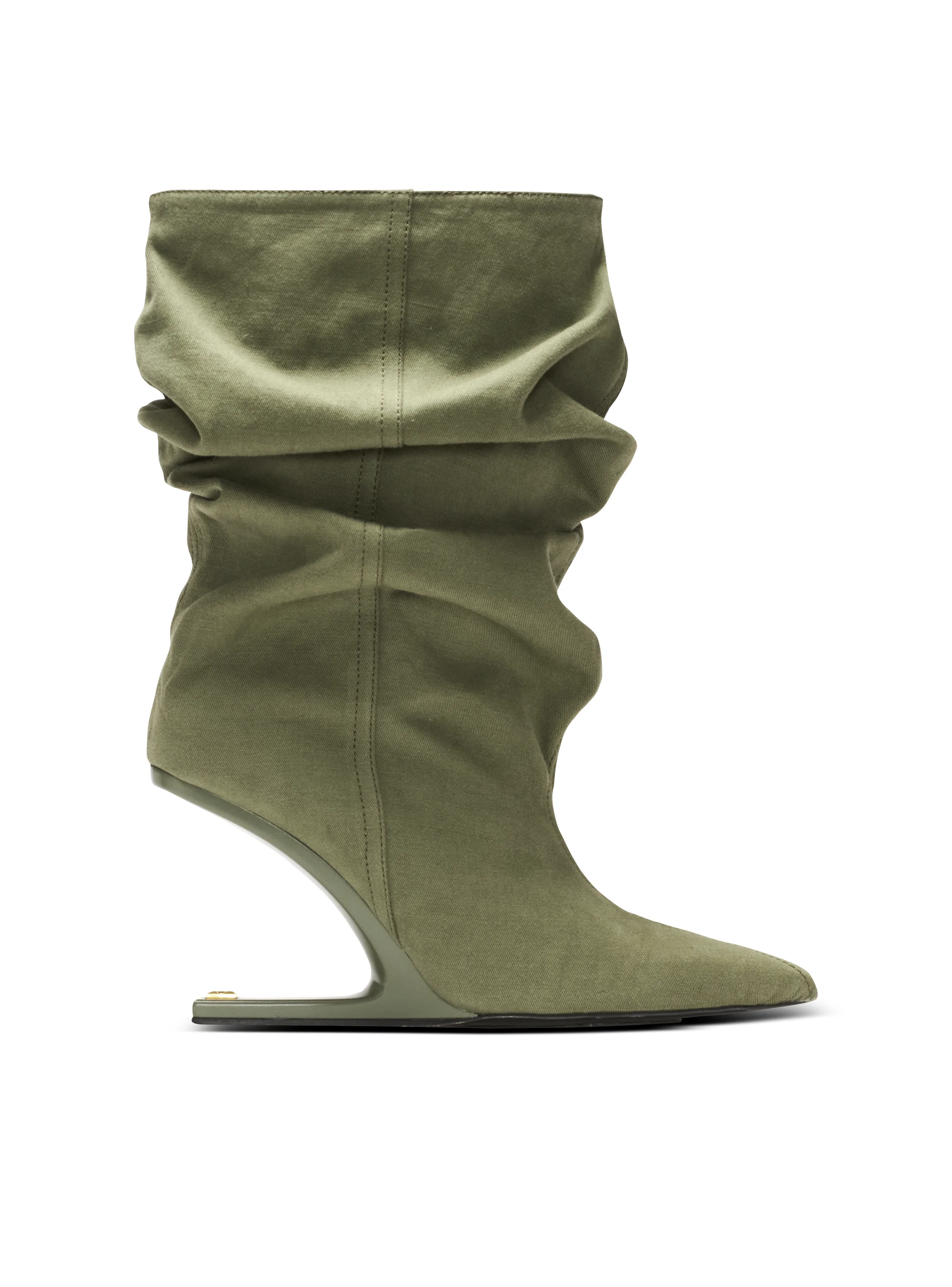 No Wedge cotton-linen ankle boots - Gaiter-style draping - Pointed toe - Engraved PB logo on the gold metallic detail decorating the inner heel - Leather outsole, insole and lining - Heel height: 9.5 cm - Main material: 66% cotton 34% linen - Made in Italy - Item: GN0TA237TLCO