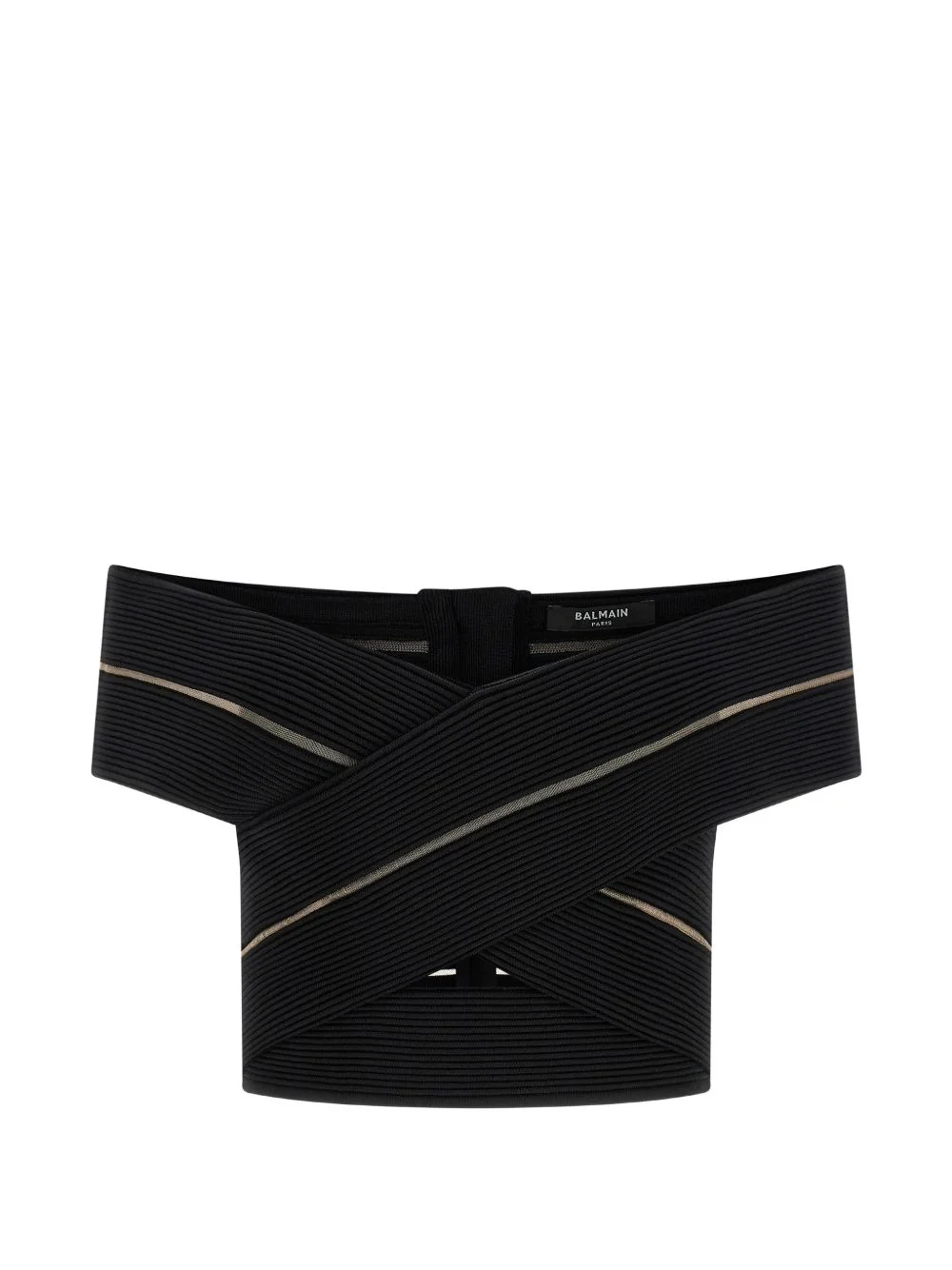 off-the-shoulder top Highlights - Black - Mesh inserts - Zip closure - Cropped Made in Italy Composition Viscose 77%, Polyester 14%, Polyamide 8%, Spandex/Elastane 1% Washing instructions Read Manufacturer Guidelines