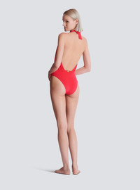 One-piece swimsuit - Crossed halterneck with open front - Low back with engraved "Balmain" label in gold metal - Model measures 180cm and wears a size 36 - Main material: 85% polyamide 15% elastane - Made in Italy - Item: BKBUB2510