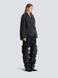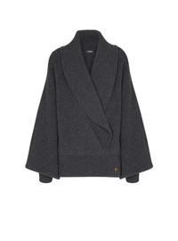 Oversized jumper with a wrap neckline - Long batwing sleeves - Ribbed trim - Balmain Paris plaque on the bottom - Oversized fit - Model measures 180cm and wears a size S - Main material: 100% wool - Made in France - Item: FF0KJ050KJ22